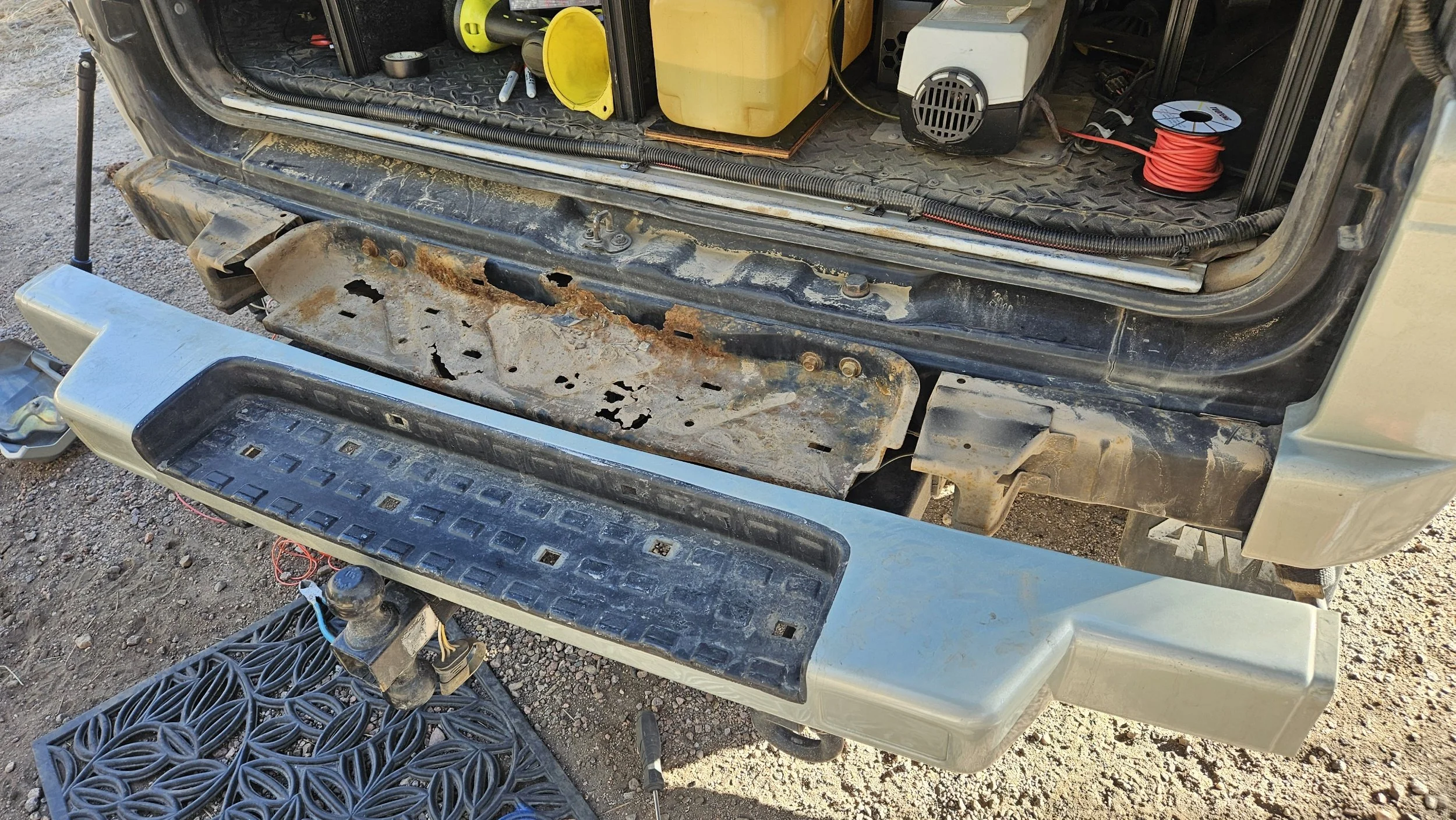 The underside structure of the bumper is in rough shape. The metal underneath is heavily rusted and honestly looks cancerous at this point. This was not entirely unexpected given the age of the vehicle, but it is still frustrating to see how far it has progressed.